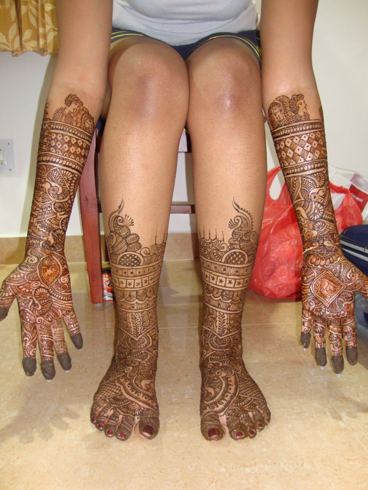 These designs may be Indian Bridal Mehndi Designs which are showing the culture of the India. In one picture the Mehndi designer filled the complete hand (front and back, Hands and arms) even the fingers are filled with stylish mehndi designs. But when we discuses about bridal feet, The Indian mehndi designer shows the Indian culture in form of leaf and floral mehndi designs. These types of mehndi designs are mostly seen in Indian and Pakistani wedding parties, and mostly strong age girls (26-34 years old girls) prefer these types of mehndi designs because according to current fashion culture, mostly teen age girls don’t give preference to covering whole hand with mehndi, they just like simple mehndi design, like a floral series or any single pattern. And it is also seen that some professional mehndi designers draw or used mehndi in a stunning style and cover whole hand with mehndi that it become the best henna design.